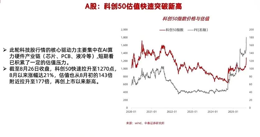 这其中,科创50估值提升幅度较大,目前PE水平大概在177倍,创了上市以来的新高;